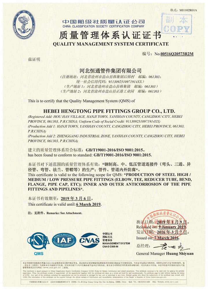 河北恒通管件集團(tuán)有限公司是一家集科研開發(fā)、生產(chǎn)經(jīng)營、技術(shù)服務(wù)于一體的鋼質(zhì)管件專業(yè)制造企業(yè),是中國石油、中國石化,一級供應(yīng)網(wǎng)絡(luò)成員單位。公司擁有員工286人,占地面積20萬平方米,年產(chǎn)管件15000噸。 本公司技術(shù)力量雄厚、生產(chǎn)設(shè)備先進(jìn)、檢測手段完備。具有國內(nèi)先進(jìn)的冷擠壓三通、四通、中頻感應(yīng)推制彎頭。中頻感應(yīng)煨制彎管等生產(chǎn)線8條和200-2000t液壓機(jī)等管件生產(chǎn)設(shè)備75臺(套),設(shè)有國家檢驗(yàn)協(xié)會認(rèn)定的管件檢驗(yàn)機(jī)構(gòu)。本公司于1998年和2002年分別通過了iso9001和美國api質(zhì)量體系認(rèn)證。 主要產(chǎn)品有無縫彎頭、有縫彎頭、彎管、三通、四通、異徑管、法蘭、承插管件、接管座等高、中、低壓系列管件,主要產(chǎn)品曾獲省科技成果、省優(yōu)、部優(yōu)和國家金獎(jiǎng)等殊榮,產(chǎn)品暢銷全國,并出口中東、西歐及北美等地區(qū)。 公司秉承質(zhì)量優(yōu)先、服務(wù)至上的經(jīng)營理念,讓我們高質(zhì)量的產(chǎn)品架起您我合作的金橋共赴輝煌未來。